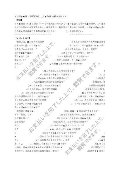 【明星通信】法律学概論1(PE2060) _ 1単位目 合格レポート