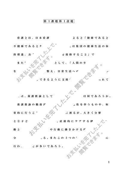 【聖徳大学】基礎看護(D060)第1課題第1設題 評価A