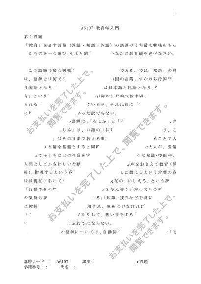 仏教大学 教育学入門 第1設題
