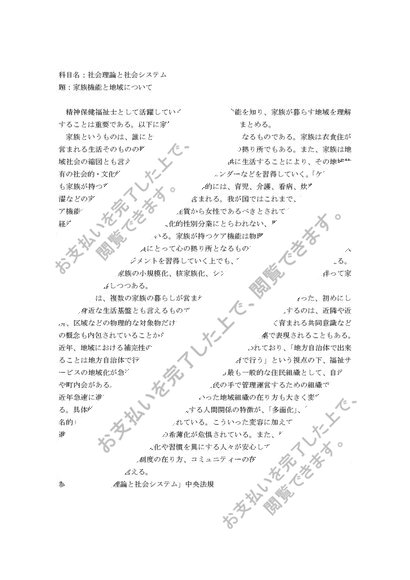 2.科目名「社会理論と社会システム」 題「家族機能と地域について」