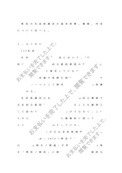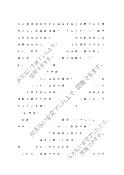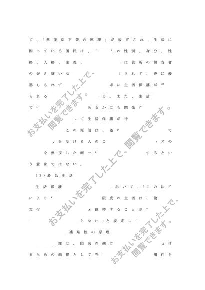 現在の生活保護法の基本原理、種類、内容について