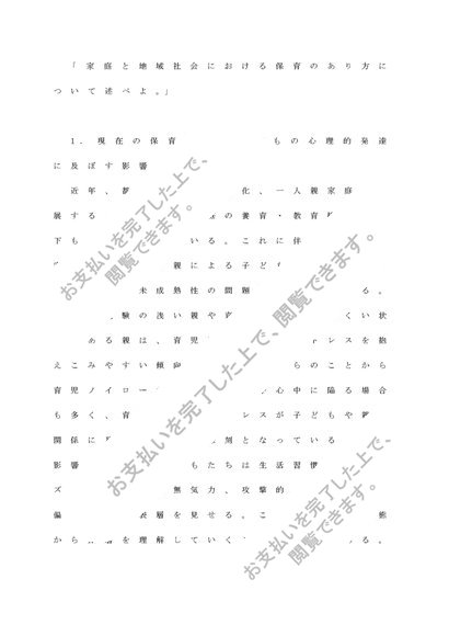 児童心理学 設題①【レポート】A判定 「家庭と地域社会における保育のあり方について述べよ」