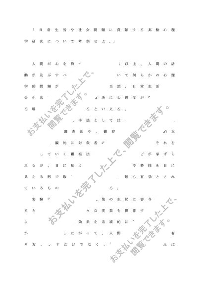 心理学基礎実験 設題②【レポート】A判定 「日常生活や社会問題に貢献する実験心理学研究について考察せよ」