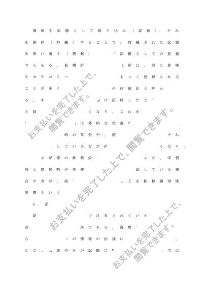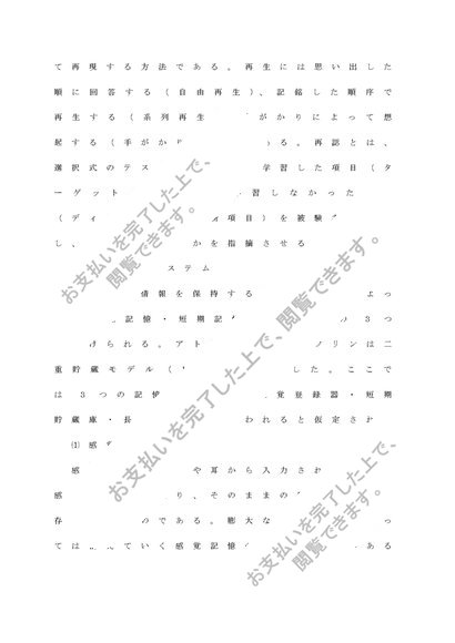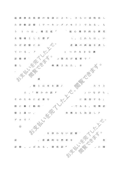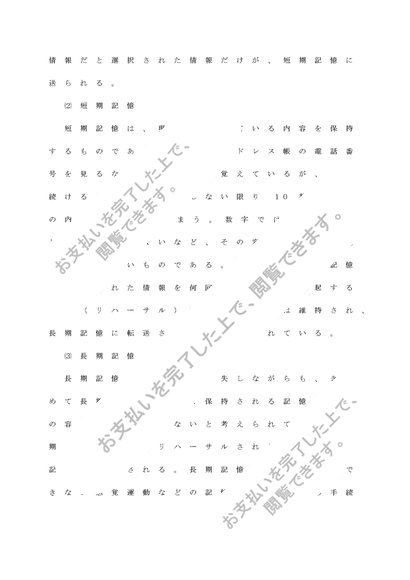 認知心理学【レポート】B+判定 「短期記憶、長期記憶、作動記憶という用語を用いて、人間の記憶の仕組みと」
