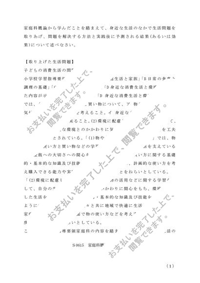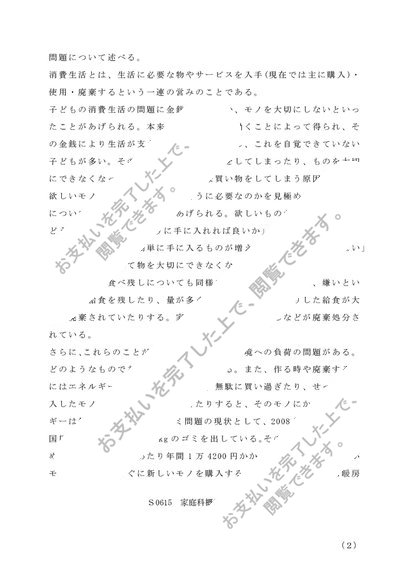 【佛教大学】家庭科概論 A判定レポート 佛教大学通信教育課程
