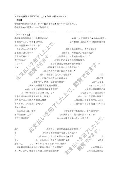 【明星通信】日本史各論2(PE2030) _ 1単位目+2単位目セット合格レポート
