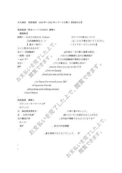 日大通信 英語基礎 令和5~7年度レポート分冊1【和訳付き】