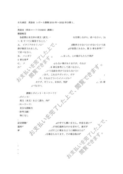 日大通信 英語Ⅱ レポート課題2023年~2026年分冊1「記述問題解き方」付き