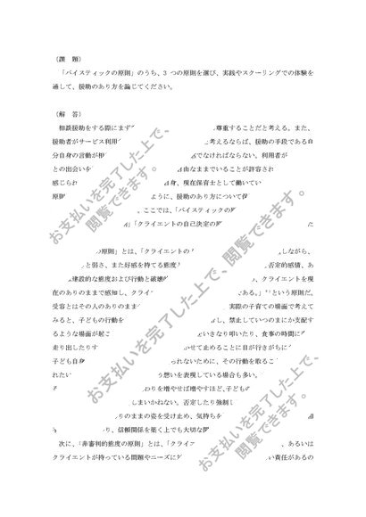 (優評価)「バイスティックの原則」のうち3つの原則を選び、実践やスクーリングでの体験を通して援助のあり方を論じなさい。