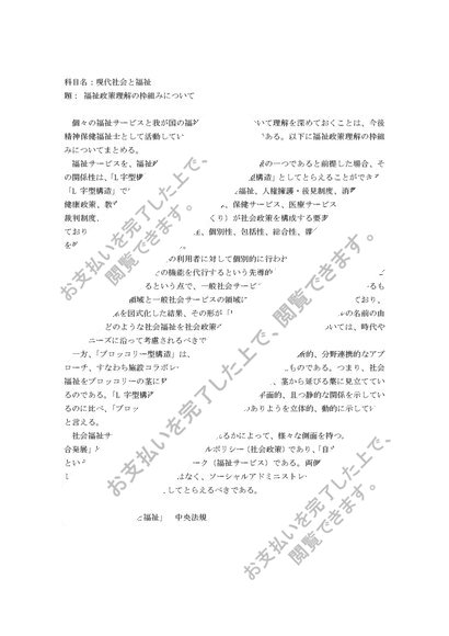 10. 科目名「現代社会と福祉」 題「福祉政策理解の枠組みについて」