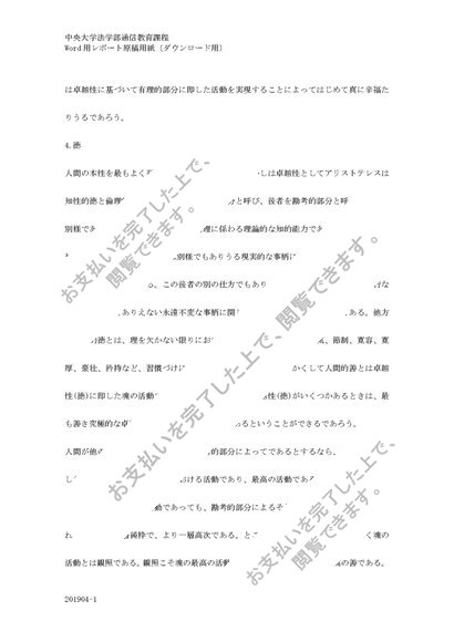 中央大学法学部通信教育課程 2020年 哲学 第3課題 C評価