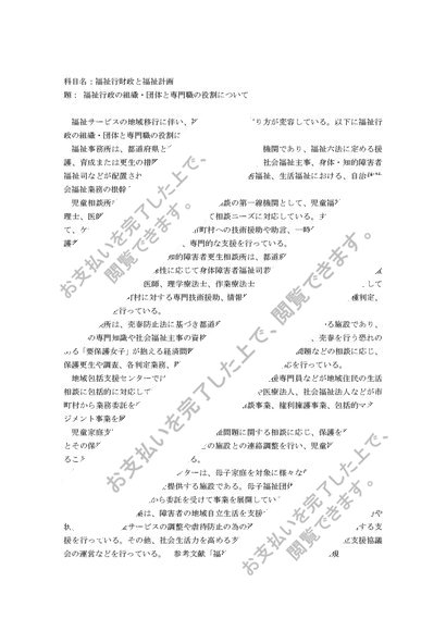 12. 科目名「福祉行財政と福祉計画」 題「福祉行政の組織・団体と専門職の役割について」