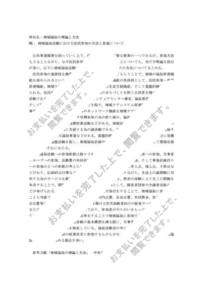 14. 科目名「地域福祉の理論と方法」 題「地域福祉活動における住民参加の方法と意義について」