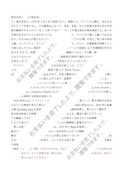 ☆明星大学 英米文学1(2単位目)合格レポート☆