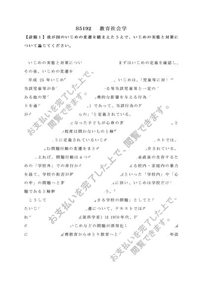 2019年度 佛教大学 S5192 教育社会学 レポート A判定