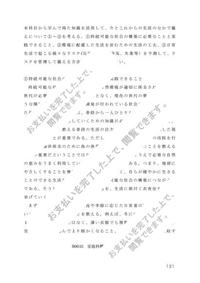 S0615 家庭科概論 レポート 2019,2020年シラバス対応