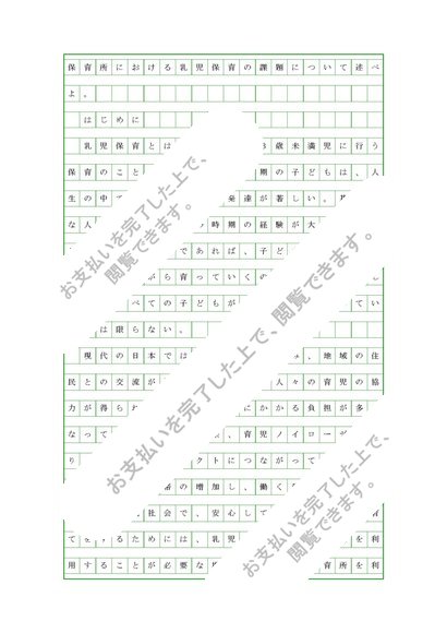 乳児保育1「保育所における乳児保育の課題について述べよ。」