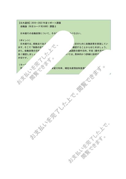 【日大通信】金融論(R31800)課題2【2019~2022年度】
