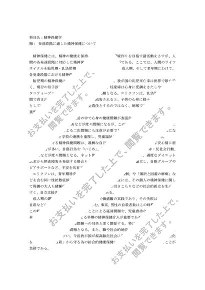 23. 科目名「精神保健学」 題「発達段階に適した精神保健について」