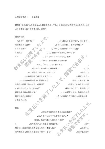 心理学研究法Ⅰ 1単位目 可評価