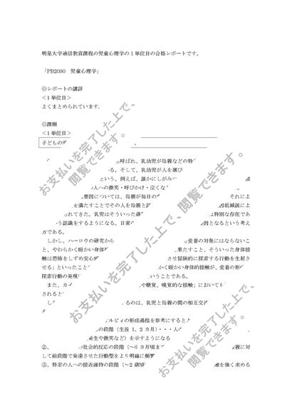 2018年度,2019年度,2020年度 PB2090 児童心理学 1単位目 合格レポート