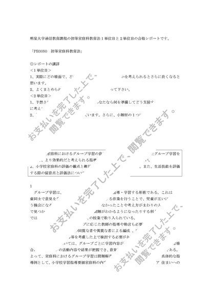 2018年度,2019年度,2020年度 PB3050 初等家庭科教育法 1単位目&2単位目 合格レポートセット