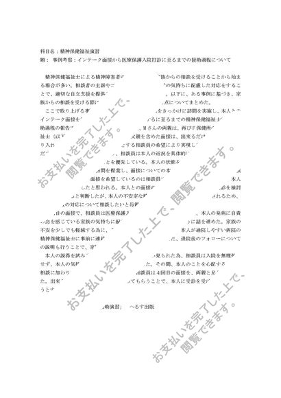 26. 科目名「精神保健福祉演習」 題「 事例考察:インテーク面接から医療保護入院打診に至るまでの援助過程について」
