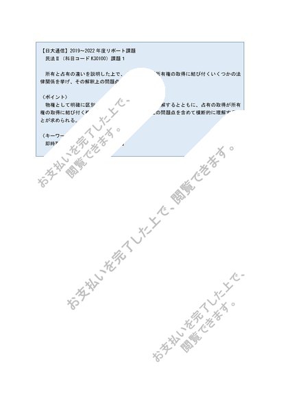 【日大通信】民法Ⅱ(K30100)課題1【2019~2022年度】