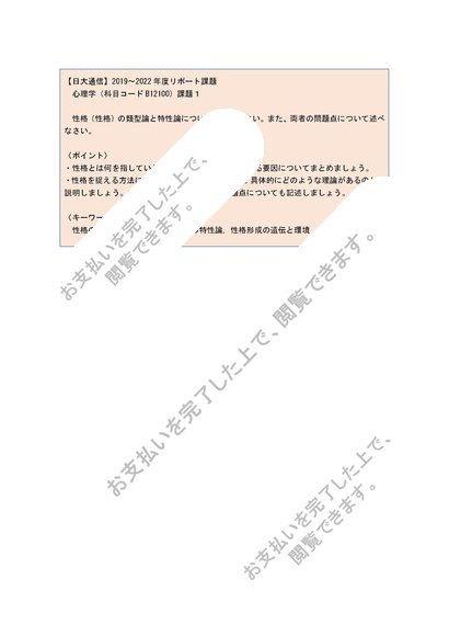 【日大通信】心理学(B12100)課題1【2019~2022年度】