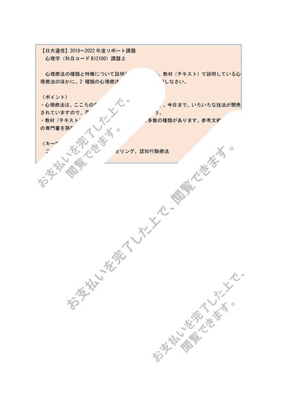【日大通信】心理学(B12100)課題2【2019~2022年度】