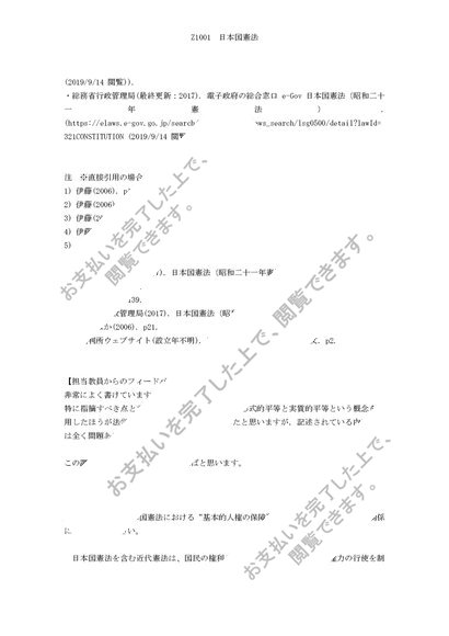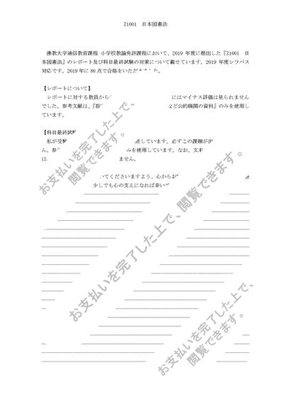 2019年度対応 佛教大学 Z1001 日本国憲法 合格レポート+科目最終試験80点合格解答例