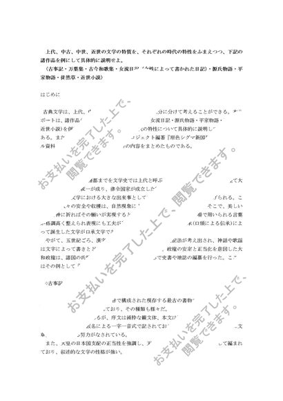 【2024年度対応】日本文学史 リポート2題&試験解答7題セット