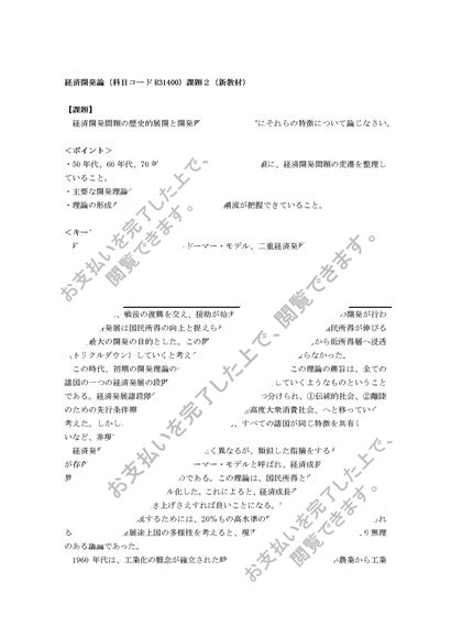 【日大通信】経済開発論(R31400)課題2(新教材)【2019~2022年度】