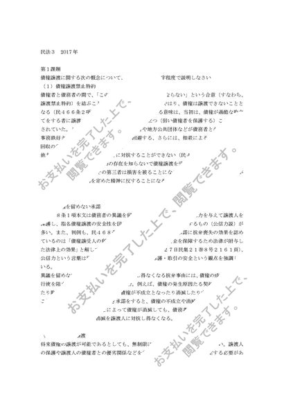 中央大学 法学部 通信教育課程 2017年 民法3 第1課題