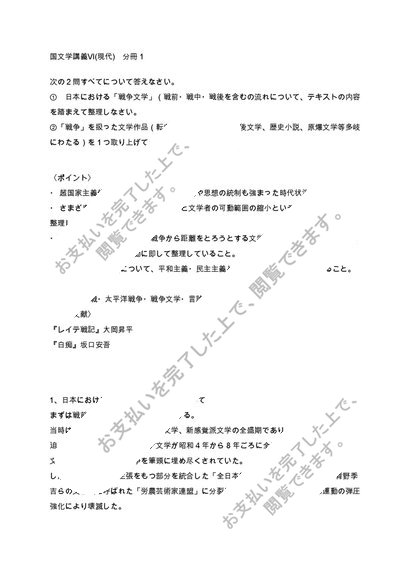 【日大通信】2019~2022年度 国文学講義Ⅵ(現代) 分冊1