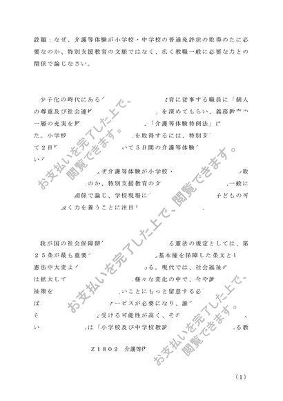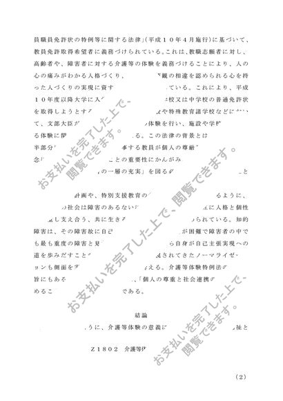 【佛教大学】Z1802 【介護等体験研究】【第1設題】A判定
