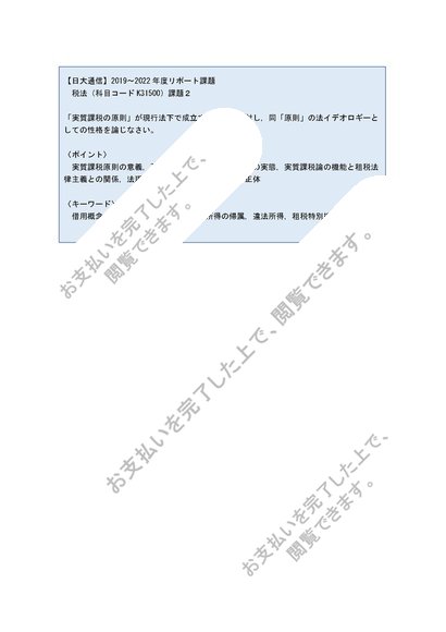 【日大通信】税法(K31500)課題2【2019~2022年度】