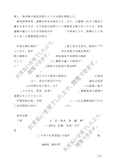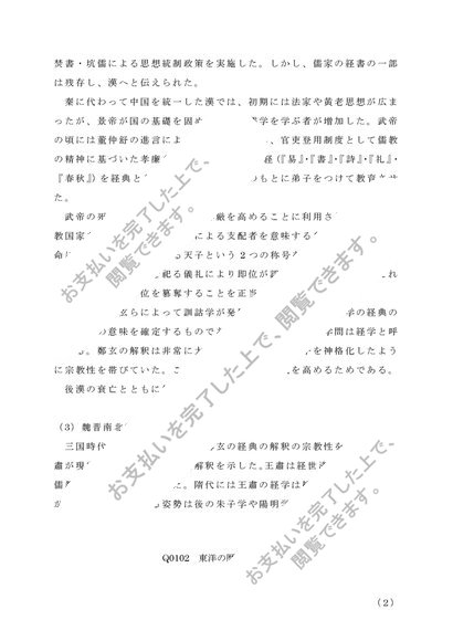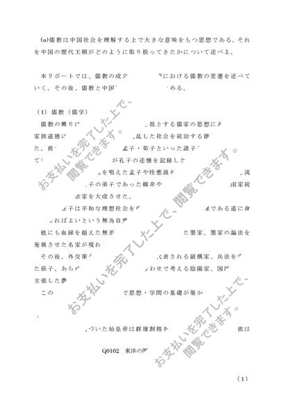 佛教大学 Q5103 東洋史概論 第1設題 (a)儒教 リポート