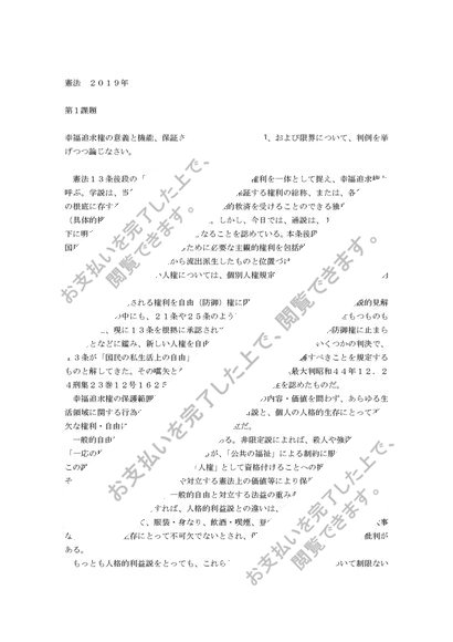 中央大学 法学部 通信教育課程 2019年 憲法 第1課題