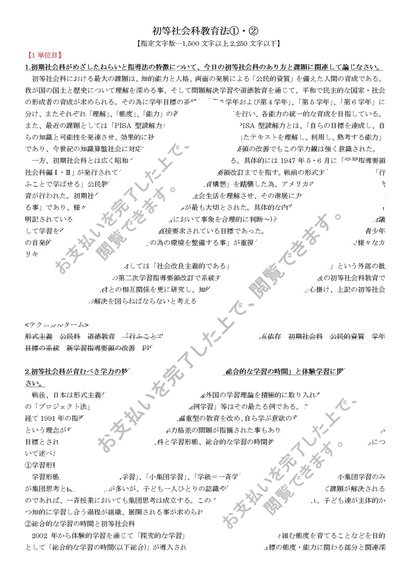 (明星大学)【PB2120】初等社会科教育法①・②レポート