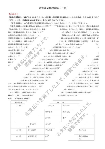 (明星大学)【PB3030】初等音楽科教育法①・②レポート