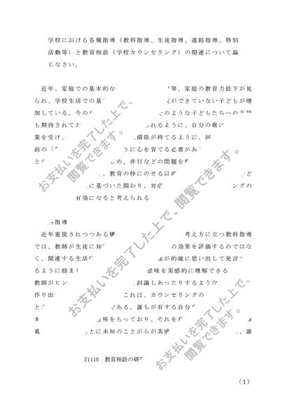 佛教大学 Z1118 教育相談の研究(中・高) 第1設題