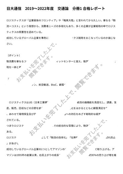 日大通信 2019〜2022年度 交通論 分冊1 合格レポート