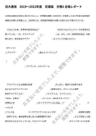 日大通信 2019〜2022年度 交通論 分冊2 合格レポート