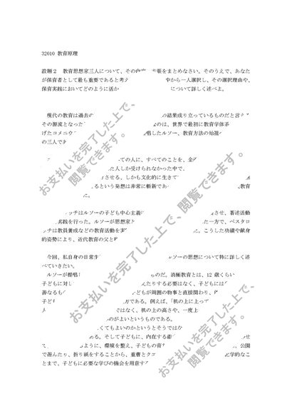 教育原理設題2~教育思想家三人について、その内容・主張をまとめなさい~