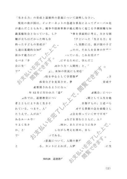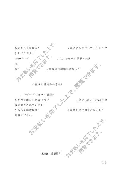 S0528 道徳教育の研究 レポート 2020年シラバス対応
