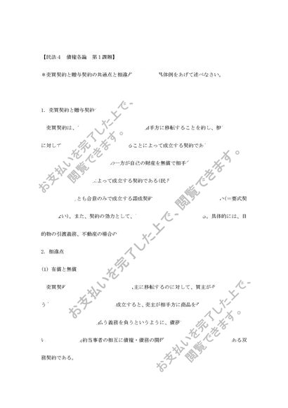 中央大学法学部通信教育課程 民法4 債権各論 2020年度 第1課題 合格レポート A評価