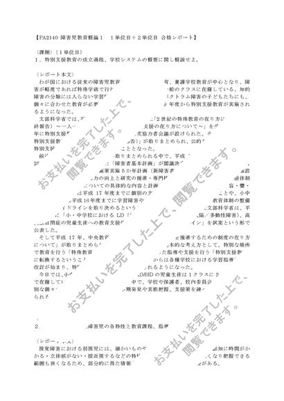 〈明星通信〉障害児教育概論1 PA2140 1単位目+2単位目セット 合格レポート