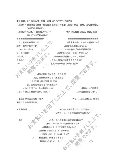 特支教員が書いた!【明星大学】PL3070重複障害・LD等の心理・生理・病理(2単位目)2019合格レポート(ノート付)