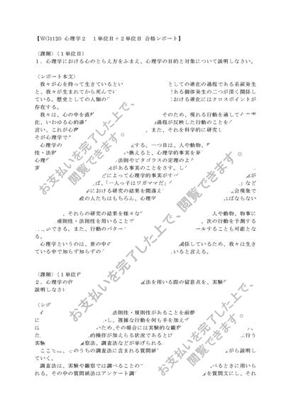 〈明星通信〉心理学2 WG1120 1単位目+2単位目セット 合格レポート